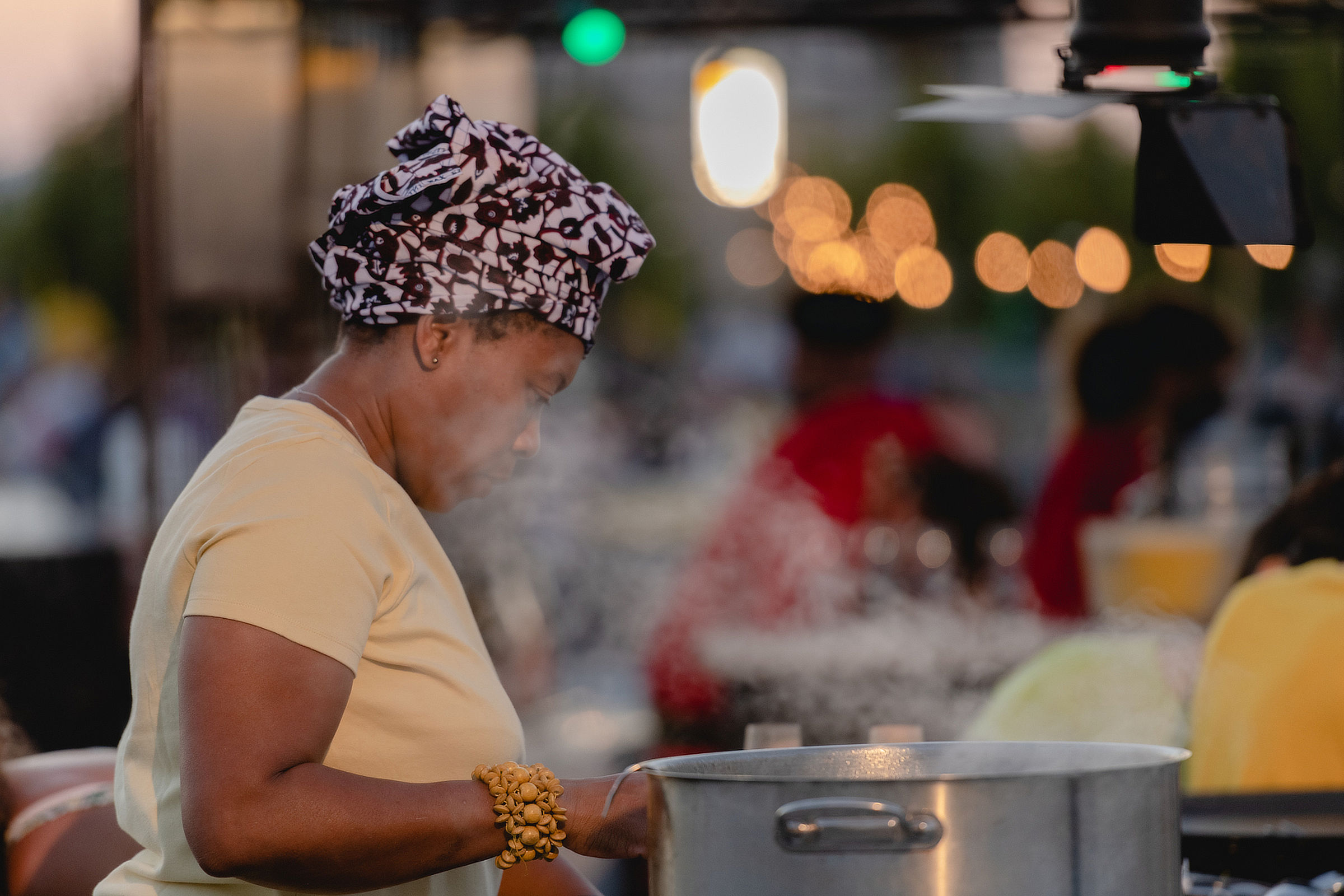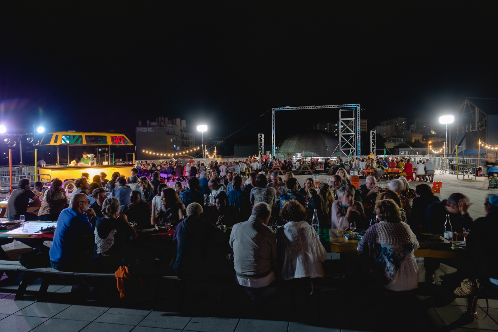 The exhibition was accompanied by a public dinner led by Chef Vou, a Beninois–French chef who created a menu fusing African and French flavours. Two craft beers, one brewed with uda spice (Negro pepper) and the other with uziza (Piper guineense), were developed in collaboration with Brasserie duCastellet as part of the project, extending the installation’s exploration of migration into the realm of taste.