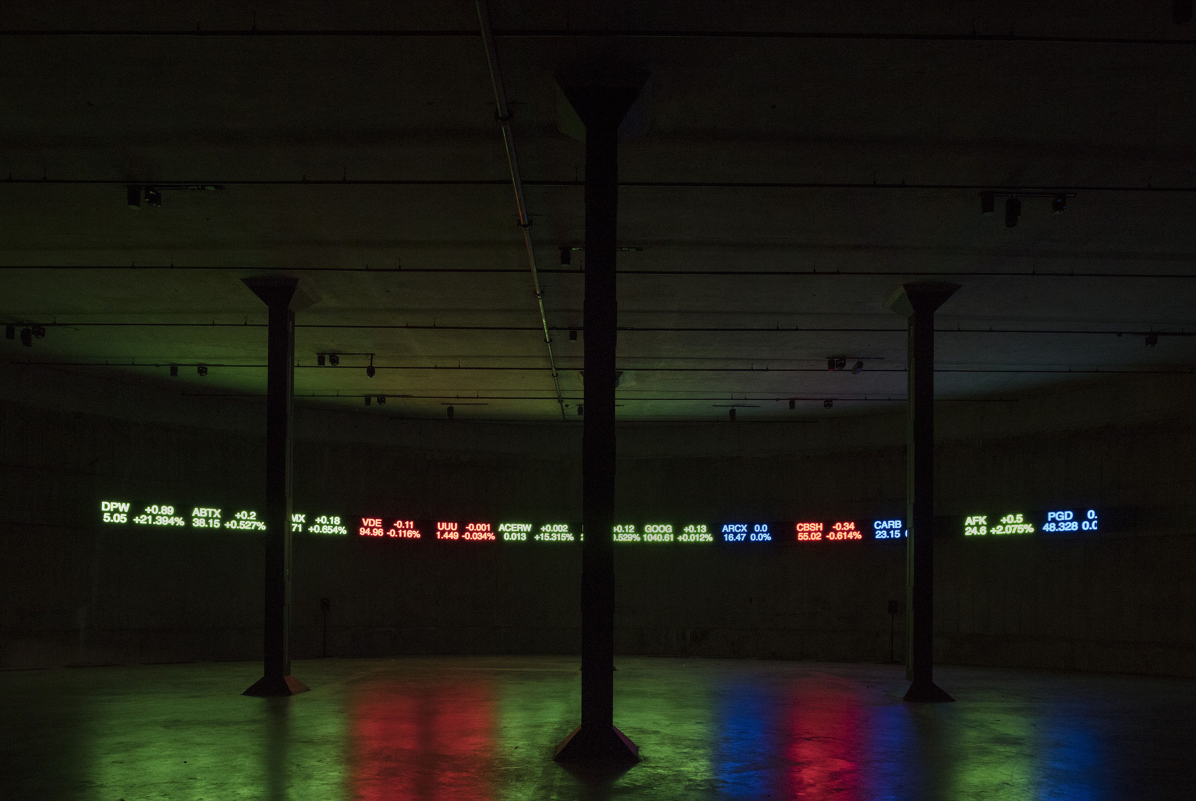 The Way Earthly Things Are Going is an immersive installation that links the volatility of global financial markets with the human experience of migration, precarity, and endurance. First created for documenta 14 in Athens (2017), the work juxtaposes live stock-market data with an ancient Greek lament, opening a stark dialogue between the abstractions of capitalism and the realities of human suffering.
