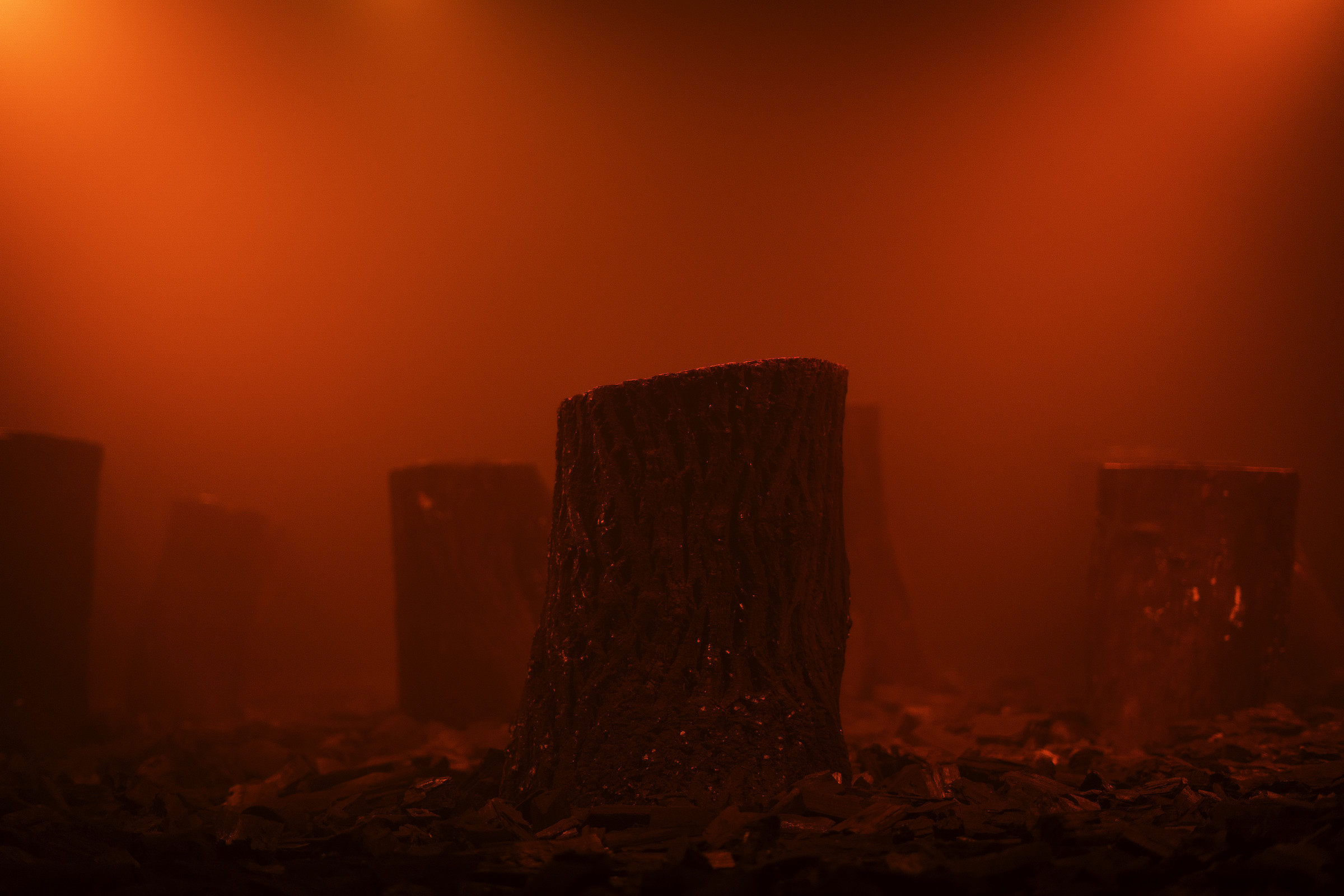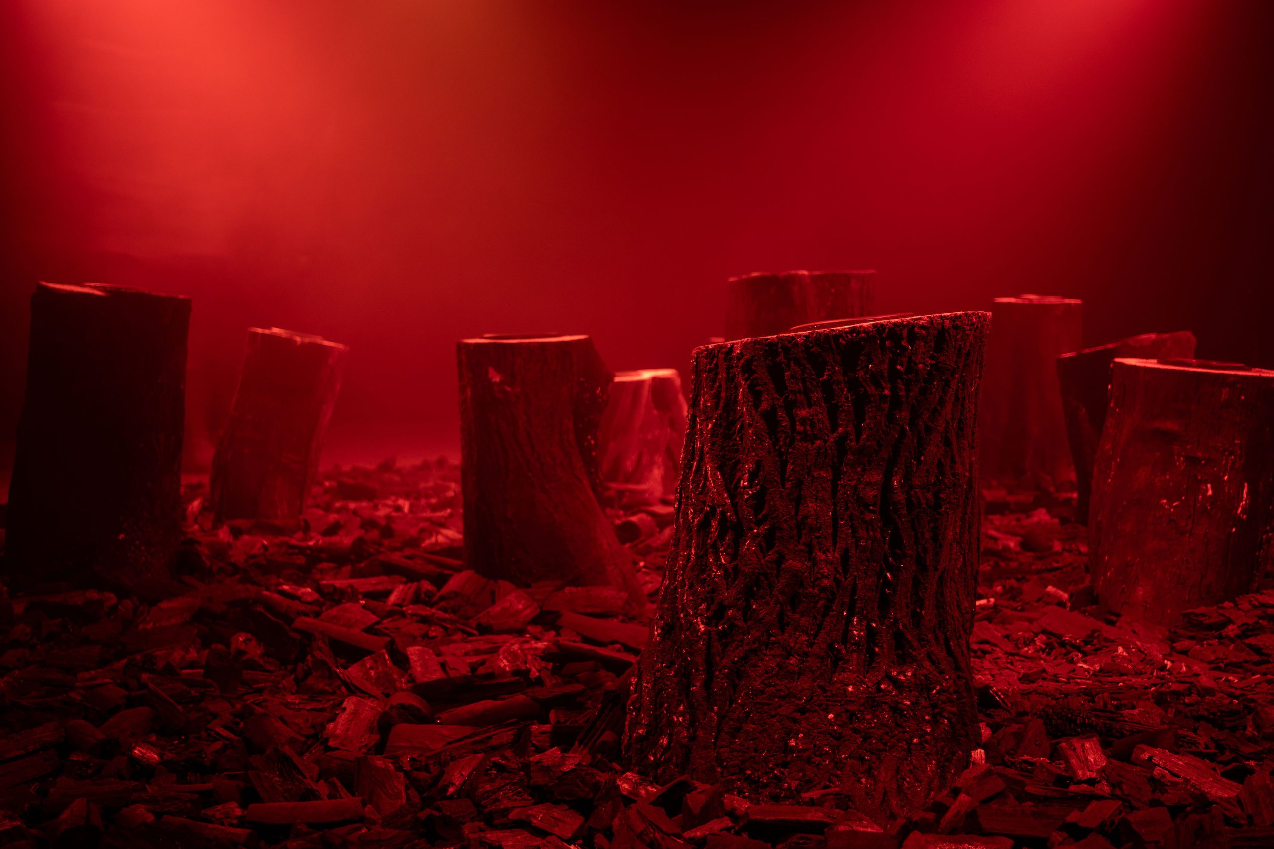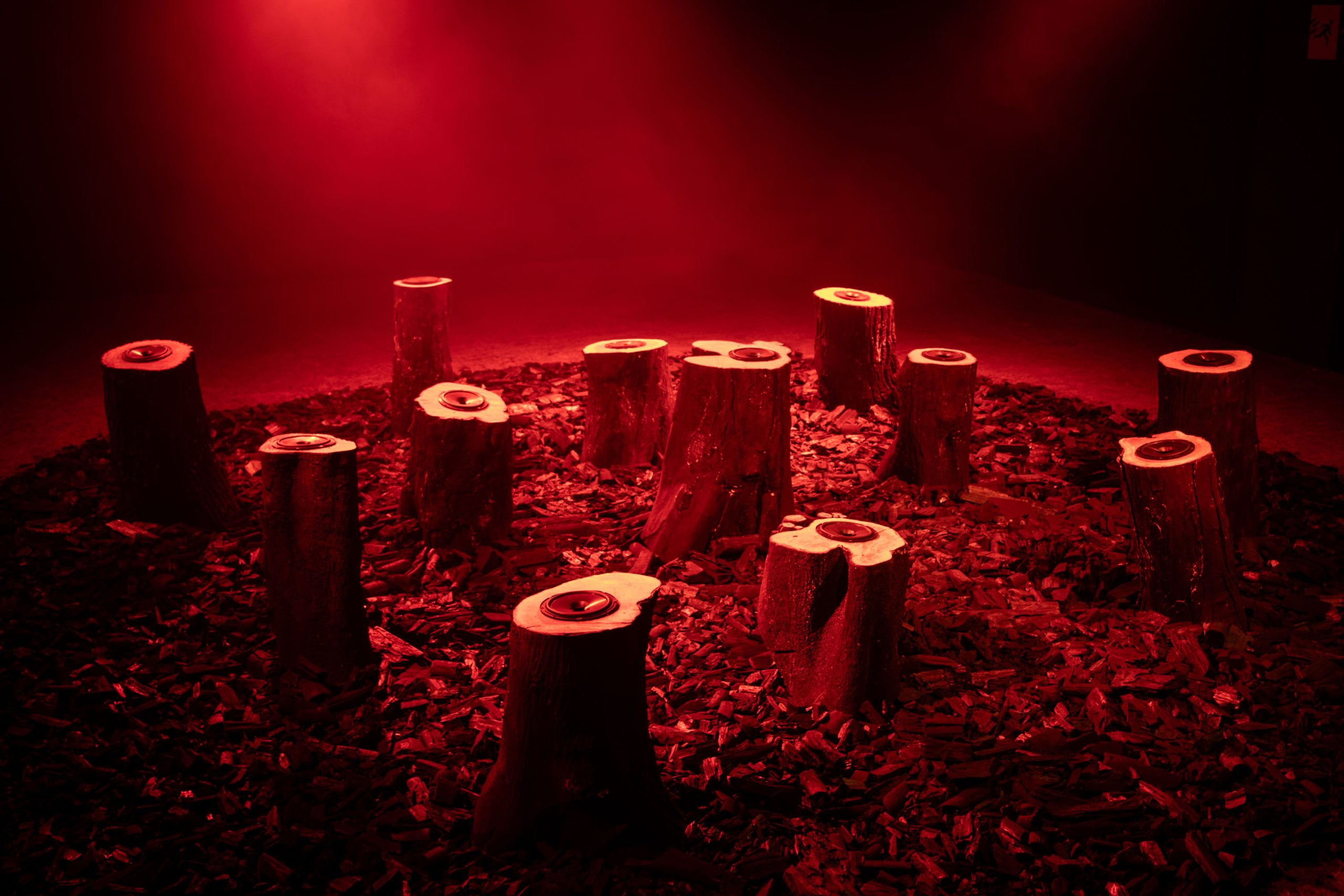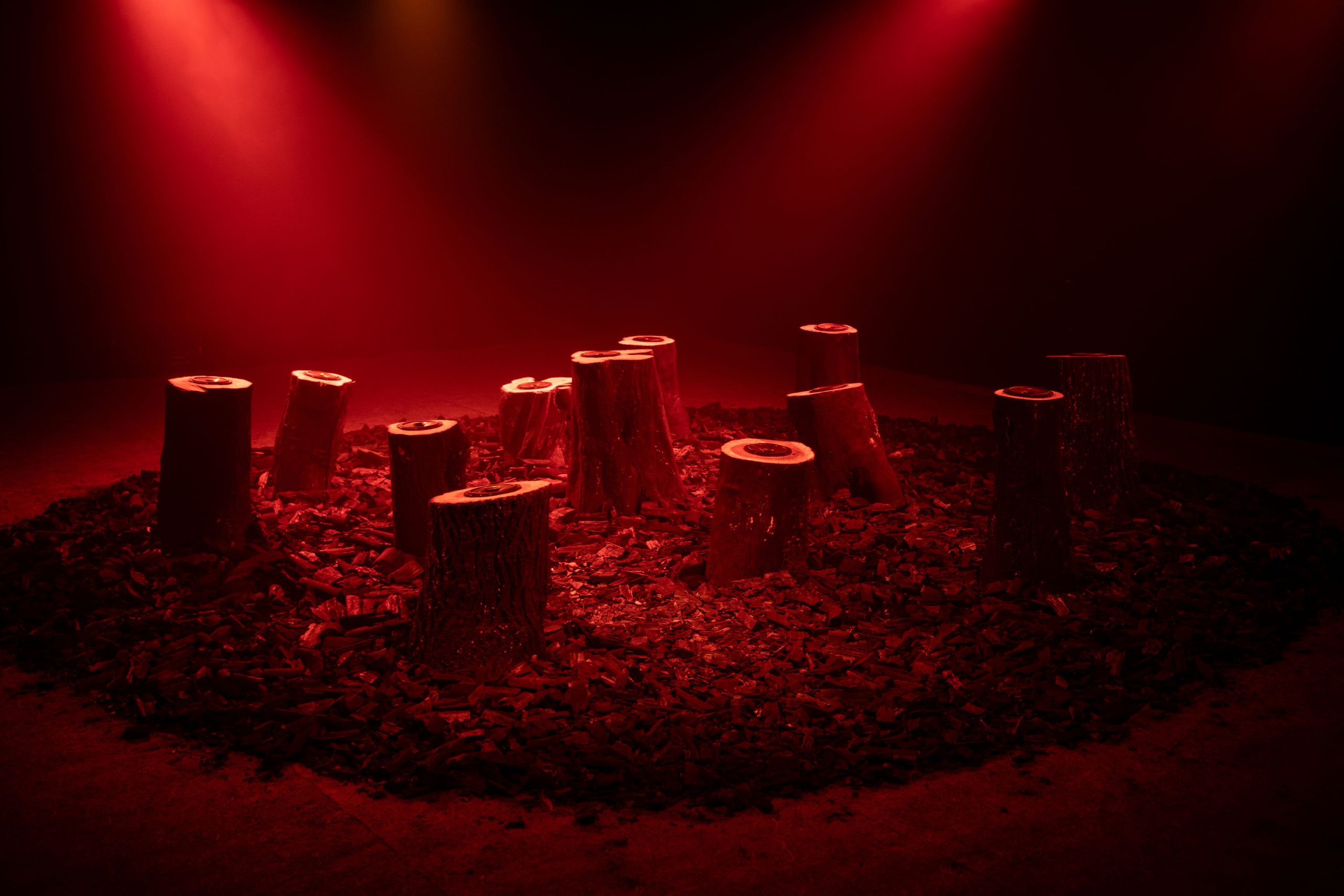 Medium : Multi-Channel audio, Tree stump loudspeakers, Charcoal, Smoke, Scent.