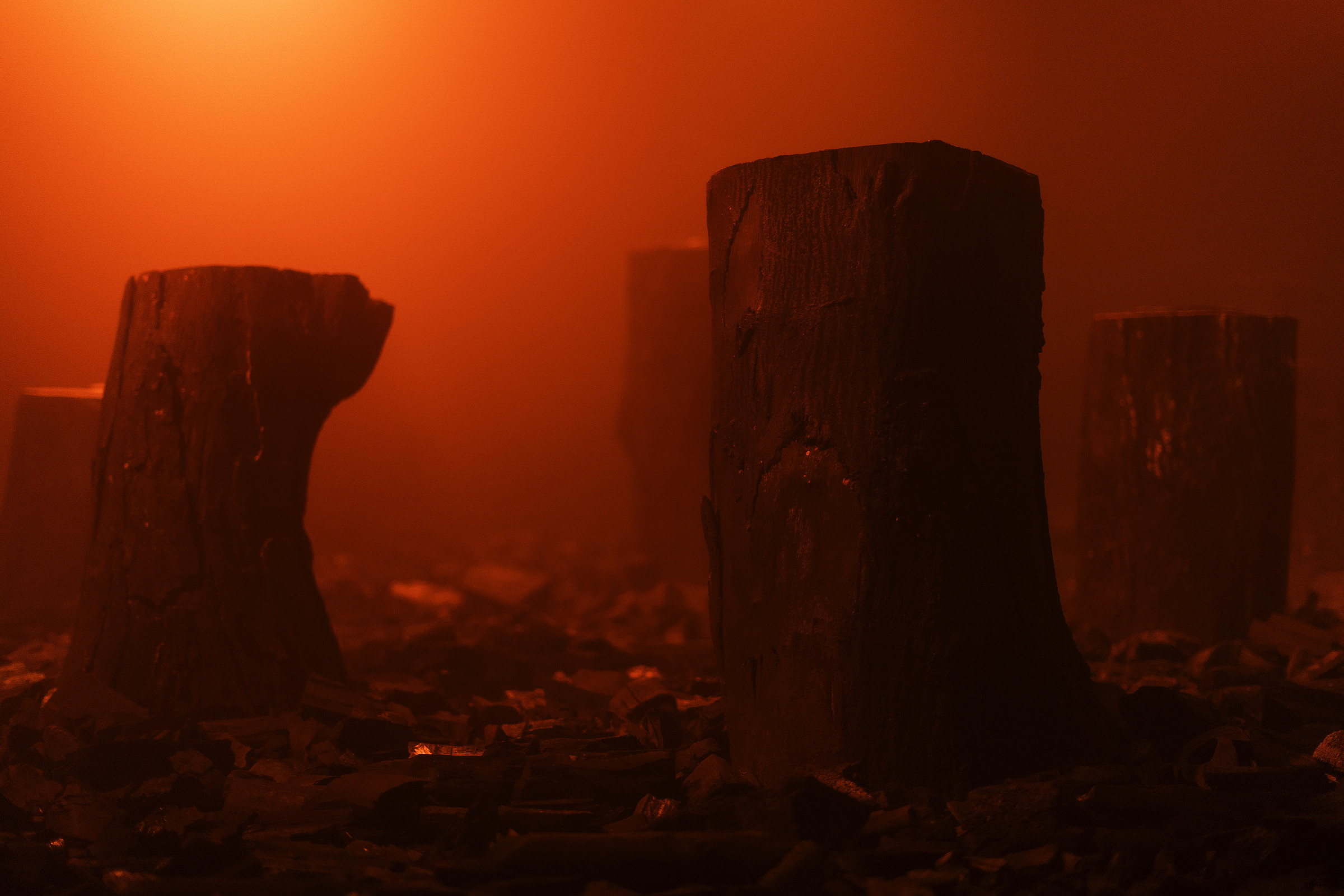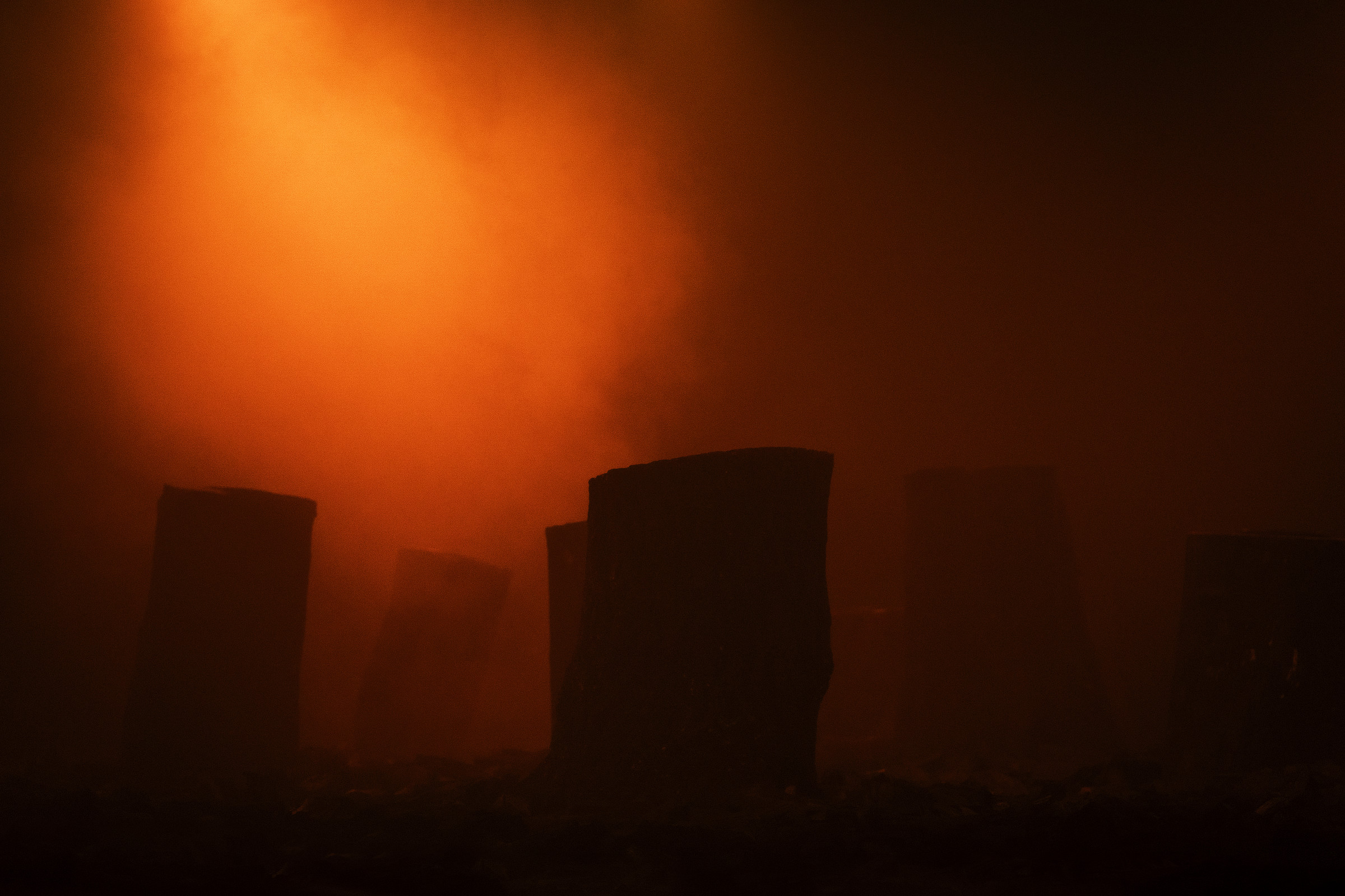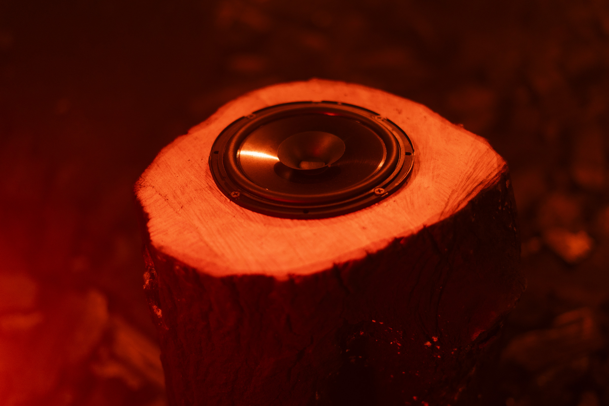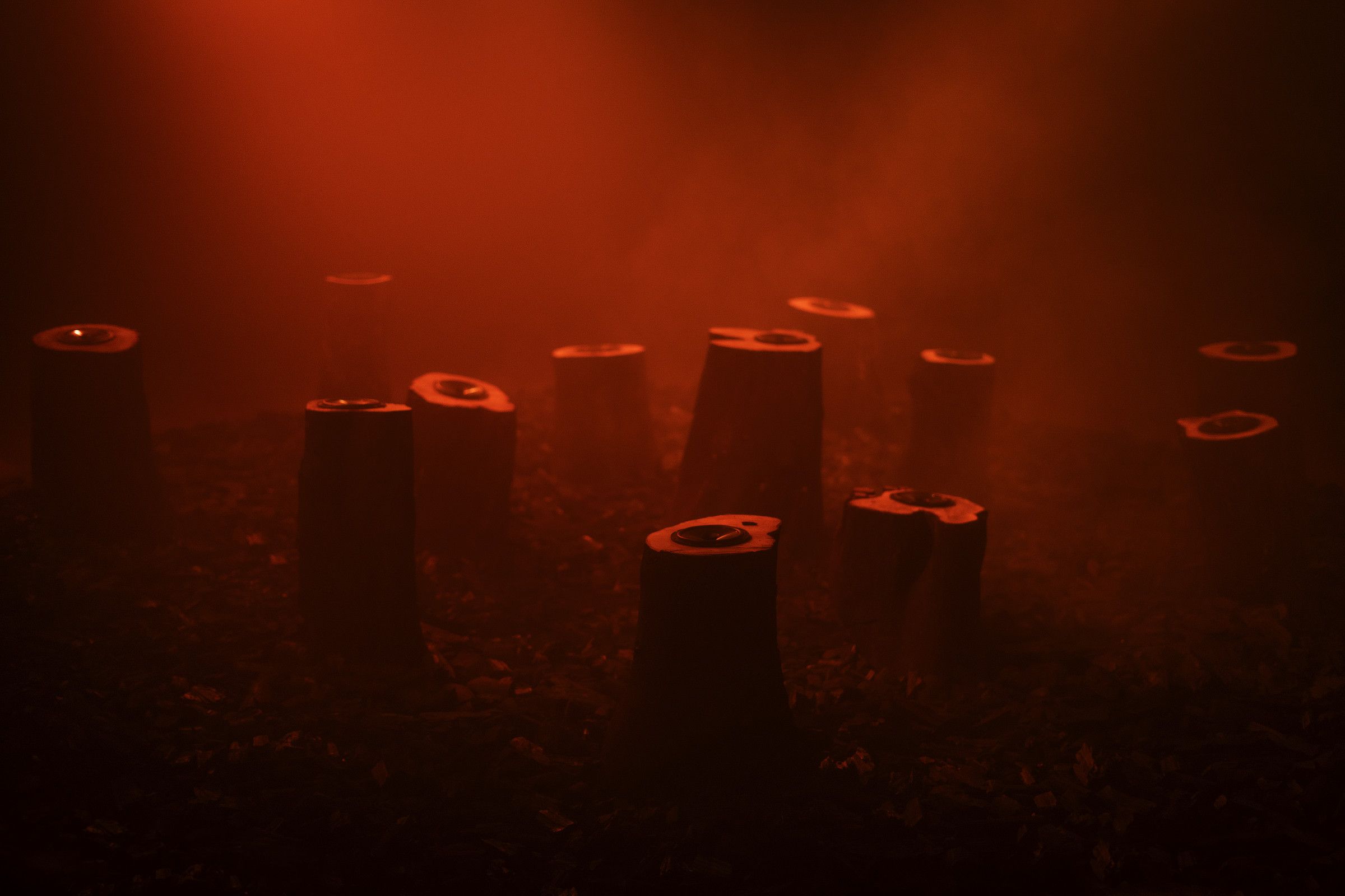 Medium : Multi-Channel audio, Tree stump loudspeakers, Charcoal, Smoke, Scent.